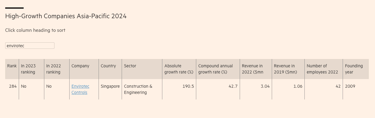 We are thrilled to announce that Envirotec Controls has been recognized as one of the 500 high-growth companies in the Asia Pacific region by Financial Times.
